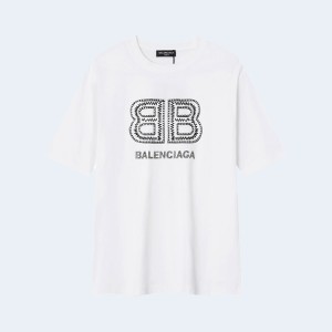 • 발렌시아가 BB 엠브로이더리 로고 티셔츠 화이트