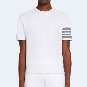 • 톰브라운 화이트 컴팩트 와플 4-바 쇼트 슬리브 스웨트셔츠