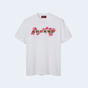 • 구찌 프린트 코튼 저지 티셔츠