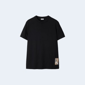 • 버버리 체크라벨 코튼 티셔츠 블랙