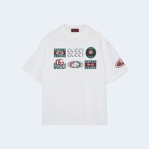 • 구찌 화이트 코튼 저지 티셔츠