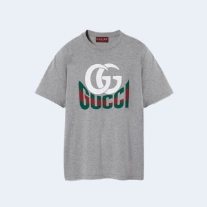 • 구찌 프린트 코튼 저지 티셔츠 ‎그레이