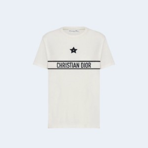 • 디올 에센셜 코튼 저지 티셔츠 화이트 네이비 블루