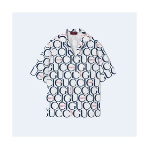 • 구찌 프린트 실크 볼링 반팔 셔츠
