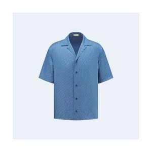 • 디올 오블리크 블루 실크 코튼 자카드 반소매 셔츠