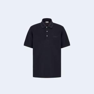 • 디올 아이콘 실크 피케 폴로 셔츠 네이비