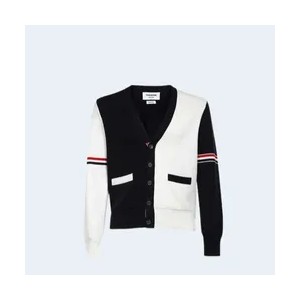 • 톰브라운 RWB 스트라이프 코튼 밀라노 스티치 브이넥 가디건 화이트