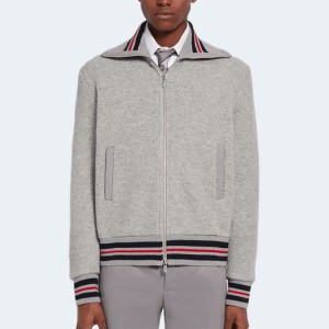 • 톰브라운 라이트 그레이 울 피케 릴렉스드 핏 퍼넬넥 집업 재킷