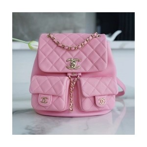 • 샤넬 23A 듀마 더블 포켓 백 미디엄 핑크 카프스킨