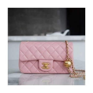 • 샤넬 클래식 메탈볼 플랩백 핑크 금장 램스킨