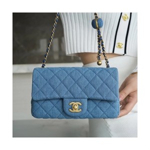 • 샤넬 뉴미니 클래식 플랩백 골드볼 데님