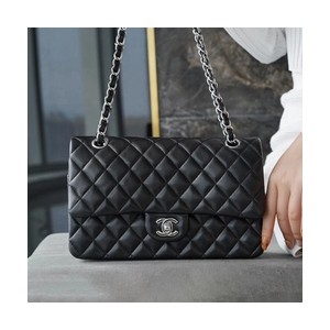 • 샤넬 클래식 미디엄 블랙 은장 램스킨