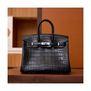 • 에르메스 버킨 25 셀리에 크로커다일 무광 블랙 실버 하드웨어 (100% HAND MADE)