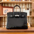 • 에르메스 버킨 25 셀리에 크로커다일 무광 블랙 실버 하드웨어 (100% HAND MADE)