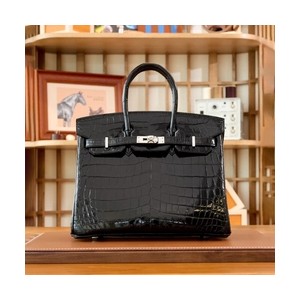 • 에르메스 버킨 25 르투르네 크로커다일 유광 블랙 실버 하드웨어 (100% HAND MADE)