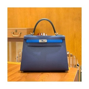 • 에르메스 켈리 28 셀리에 사파이어블루 트리컬러 (사파이어블루/블랙/이즈미르블루) 실버 하드웨어 (100% HAND MADE)
