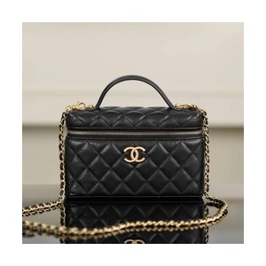 • 샤넬 탑핸들 캐비어 블랙 빈티지 골드 베니티백