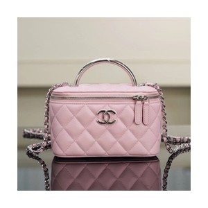 • 샤넬 탑핸들 캐비어 핑크 실버 베니티백