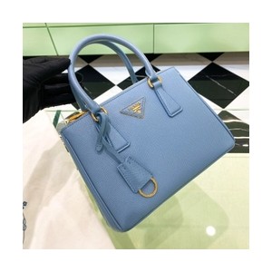 • 프라다 브러쉬드 가죽 스몰 토트 백 스카이 블루