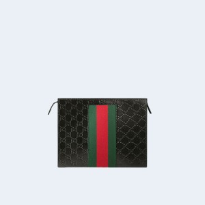• 구찌 GG 슈프림 웹 클러치백 블랙