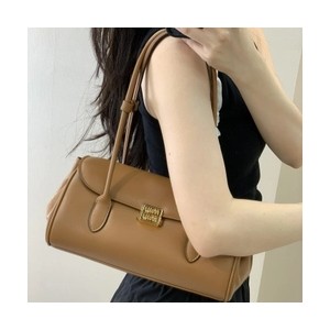 • 미우미우 가죽 스트랩 탑 핸들백 브라운