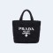 프라다 로고 자수 라피아 토트백 블랙
